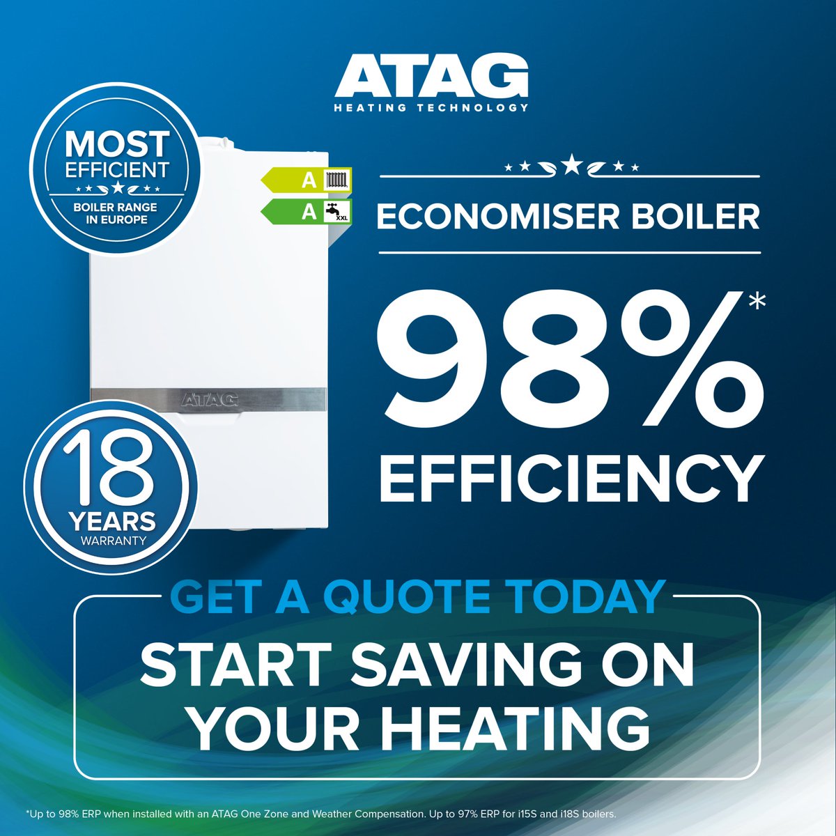 We are happy to supply and fit all brands of boiler, however, our preferred manufacturer is ATAG due to the high level of customer service they offer, which is inline with our company values. They also offer Europes most efficient boiler, reducing heating costs for our customers and providing peace of mind with up to 18 years warranty.